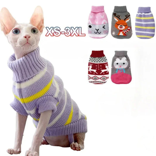 Pet Sweaters Autumn Winter Warm Cat Clothes Cartoon Print Knitting Sweater Puppy Clothing Small Dogs Costume Coat Wholesale